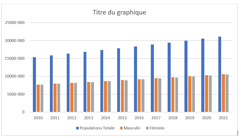 Projections 2010-2021 AnnéesPopulation TotaleMasculinFémininTéléchargement 20101536978276787817691001Télécharger 20111583953879181917921347Télécharger 20121631889781622788156619Télécharger 20131680823384112328397001Télécharger 20141730817986653888642791 Télécharger 20151781914789249948894153Télécharger 20161834124591900899151156Télécharger 20171887428694605759413711 Télécharger 20181941809797364099681688Télécharger 201919972410100175169954894Télécharger 2020205370591030385610233203Télécharger 2021211119781059541010516568Télécharger
